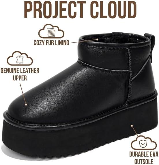 Project Cloud 100% Genuine Leather Ankle Boots for Women – Anti-Slip Memory Foam Insole Womens Boots – Lightweight Winter Womens Shoes, Ankle Booties for Women (Huggy)(Black Leather)