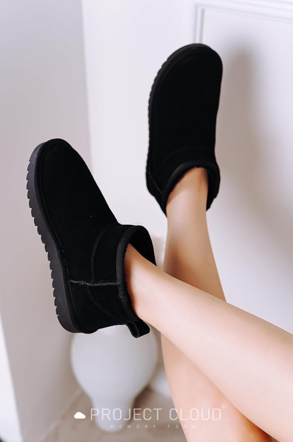 Project Cloud 100% Genuine Leather Ankle Boots for Women - Water Resistant with Memory Foam Insole Winter Boots for Women - Trending Shoes & Comfortable Women's Ankle Boots (Hippy)(Black)
