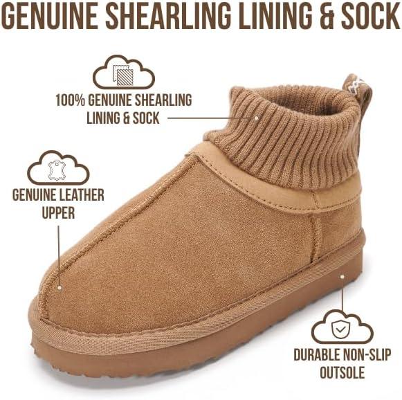 Project Cloud 100% Genuine Leather & Australian Shearling Slippers for Kids – Memory Foam Fuzzy & Non-Slip Fluffy Slippers Girls Footwear & Boys Footwear, Kids Unisex Shoes(Chestnut Suede – Dreamon)