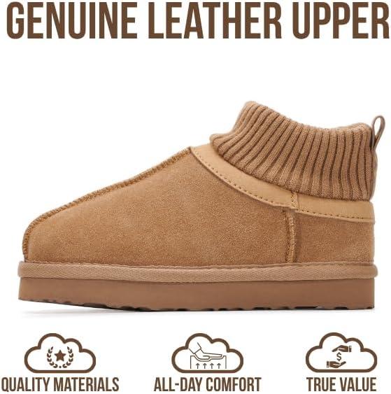 Project Cloud 100% Genuine Leather & Australian Shearling Slippers for Kids – Memory Foam Fuzzy & Non-Slip Fluffy Slippers Girls Footwear & Boys Footwear, Kids Unisex Shoes(Sand Suede)