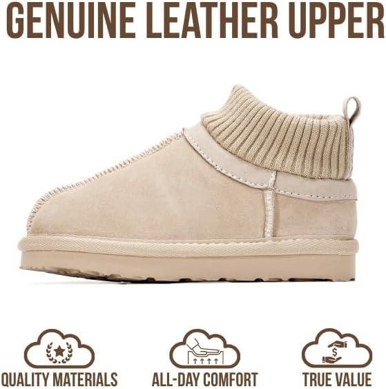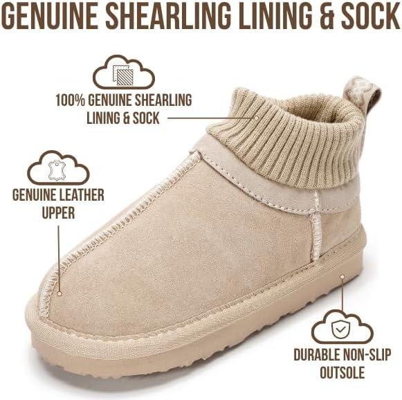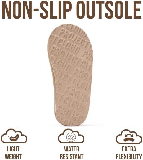 Project Cloud 100% Genuine Leather & Australian Shearling Slippers for Kids – Memory Foam Fuzzy & Non-Slip Fluffy Slippers Girls Footwear & Boys Footwear, Kids Unisex Shoes(Sand Suede – Dreamon)