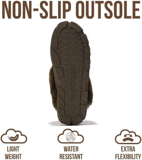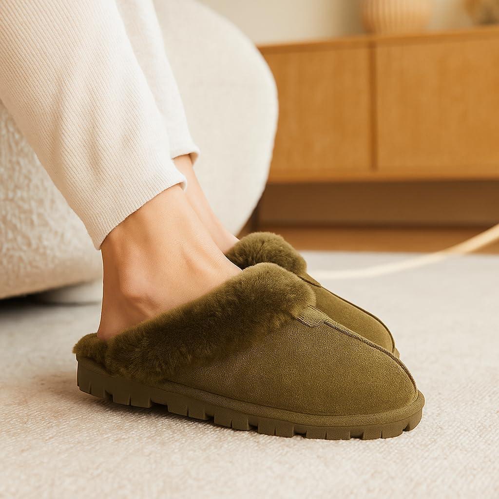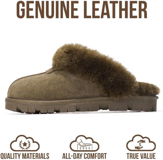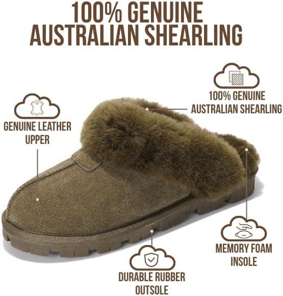 Project Cloud 100% Genuine Leather & Australian Shearling Slippers for Women – Cozy Memory Foam Women’s Slippers (Hedy)(Olive)
