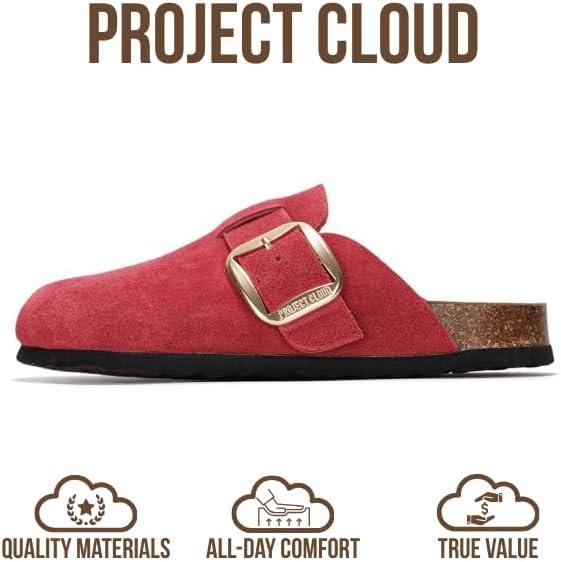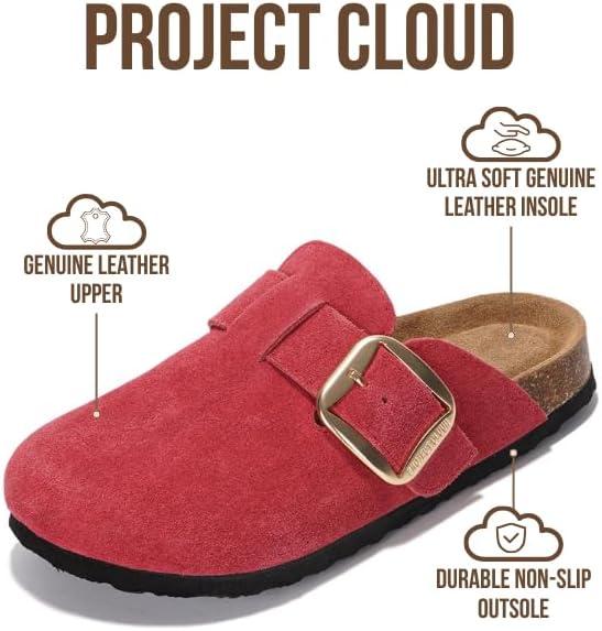 Project Cloud 100% Genuine Leather Clogs for Women Shoes - Memory Foam Insole, Non-Slip & Natural Cork Footbed Arch Support Big Buckle Womens Clogs and Mules Footwear (Manchester)(Berry)