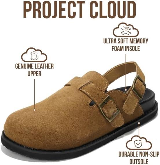 Project Cloud 100% Genuine Leather Footbed Clogs for Women – Memory Foam Arch Support Slippers for Women – Trendy Slip-ons Women’s Mules & Clogs Sandals(Tan)