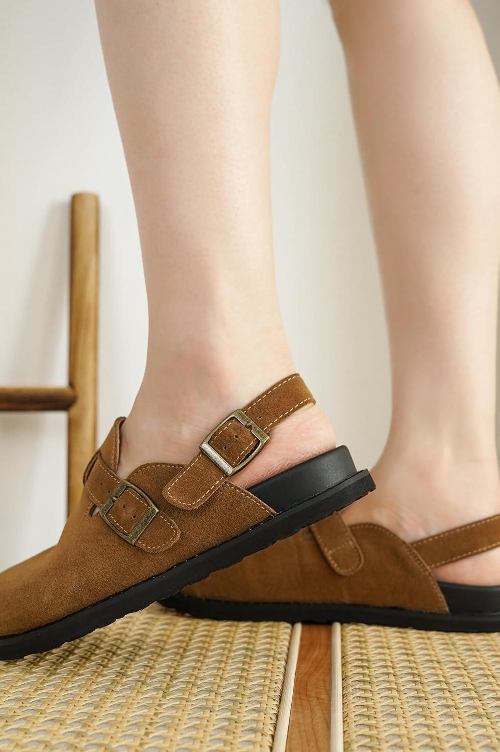 Project Cloud 100% Genuine Leather Footbed Clogs for Women – Memory Foam Arch Support Slippers for Women – Trendy Slip-ons Women’s Mules & Clogs Sandals(Olive Suede)