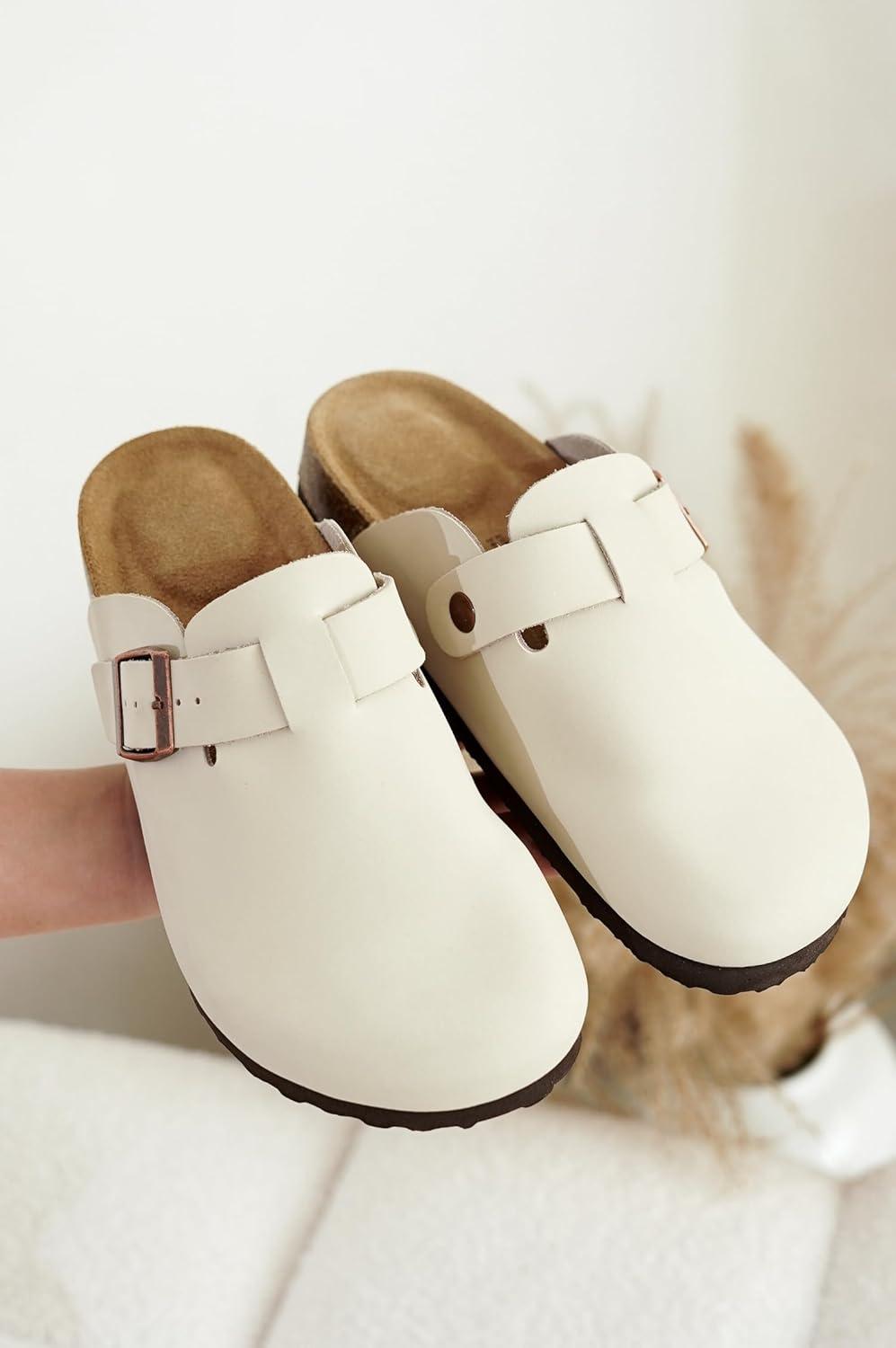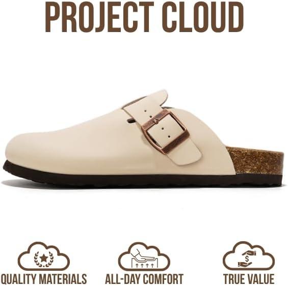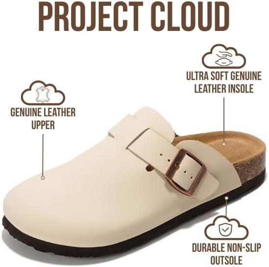 Project Cloud 100% Genuine Leather Footbed Clogs for Women - Memory Foam Arch Support Slippers for Women - Trendy Slip-ons Women's Mules & Clogs Sandals(Off-white)