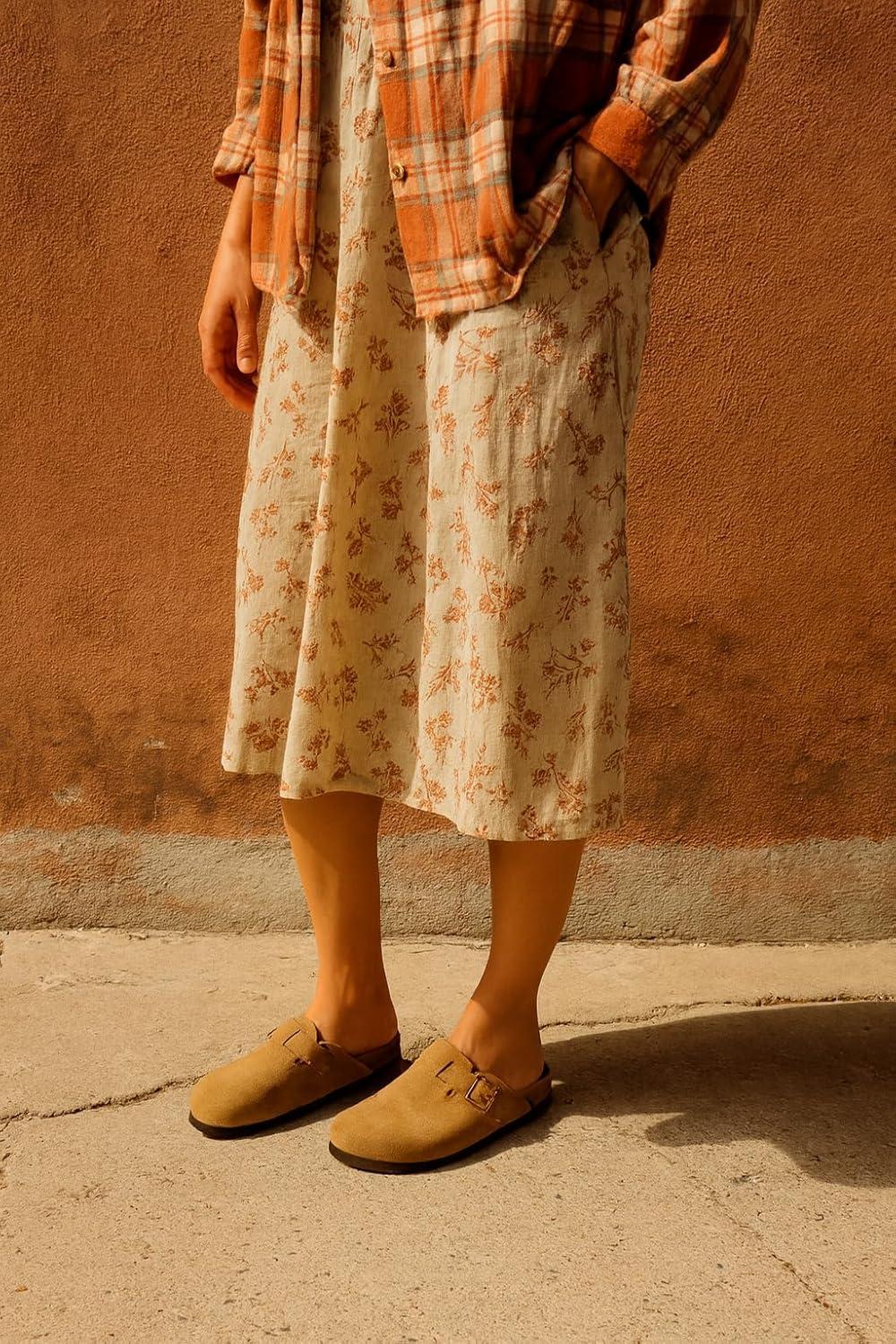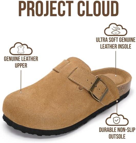 Project Cloud 100% Genuine Leather Footbed Clogs for Women - Memory Foam Arch Support Slippers for Women - Trendy Slip-ons Women's Mules & Clogs Sandals(Rust Suede)