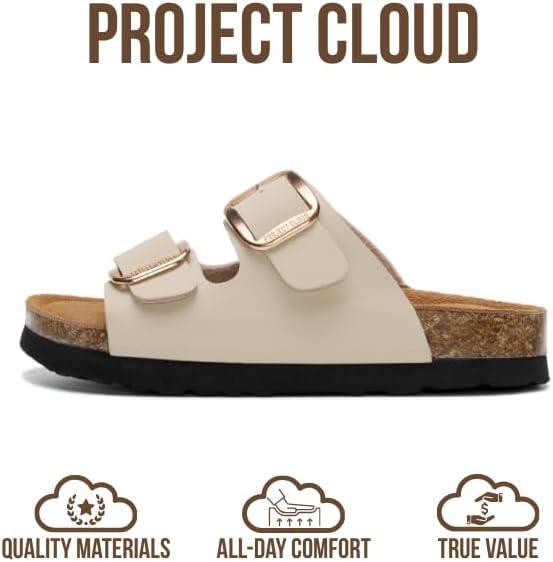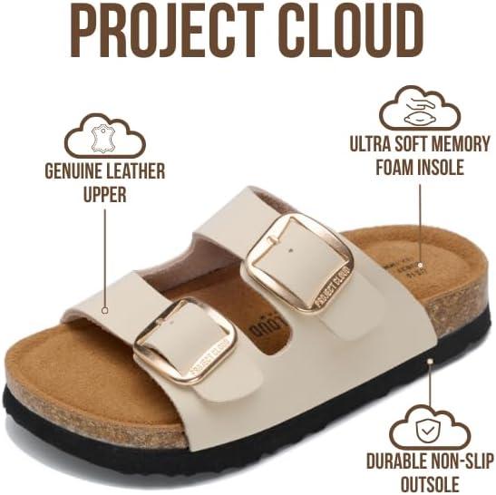 Project Cloud 100% Genuine Leather Kids Sandals - Non Slip and Lightweight Beach Sandals for Girls with Memory Foam Insole & Cork Footbed Slides for Kids - Boys & Girls Footwear (Little Santorini)(Cream Leather)