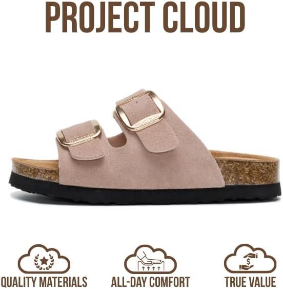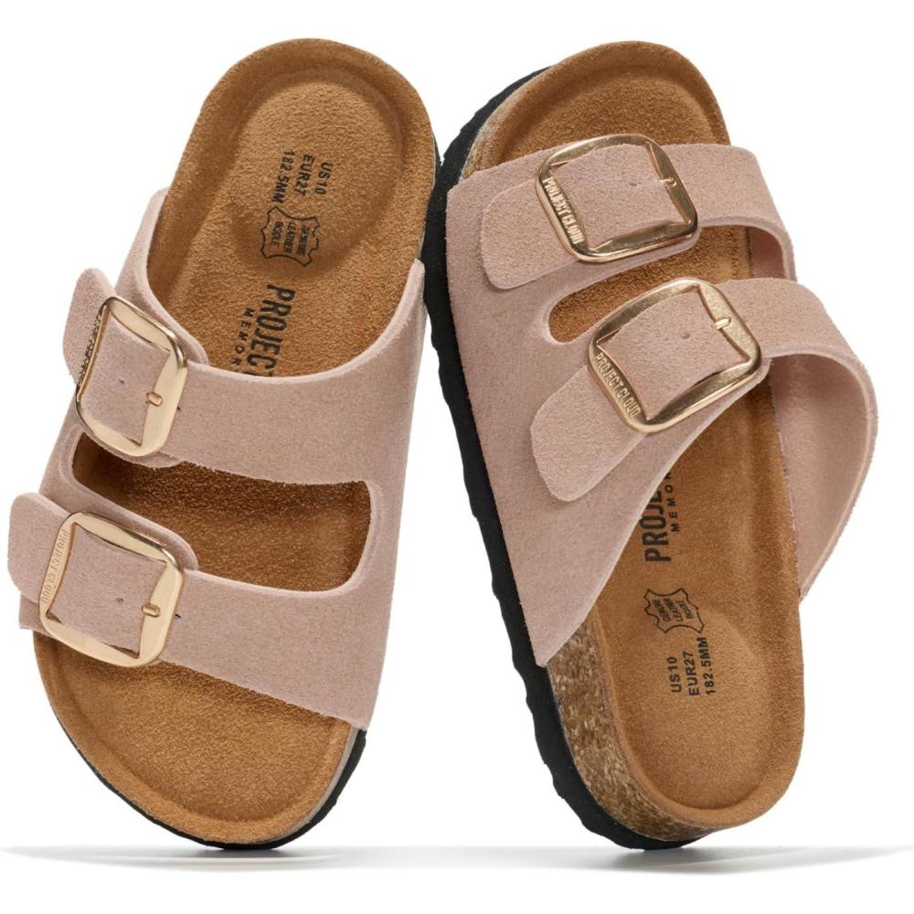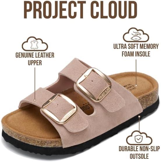 Project Cloud 100% Genuine Leather Kids Sandals - Non Slip and Lightweight Beach Sandals for Girls with Memory Foam Insole & Cork Footbed Slides for Kids - Boys & Girls Footwear (Little Santorini)(Dusty Pink Suede)