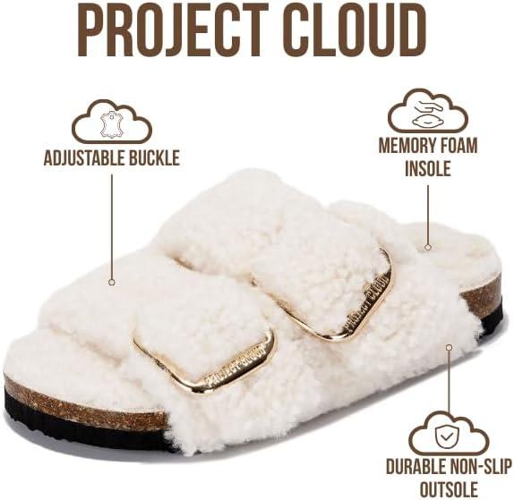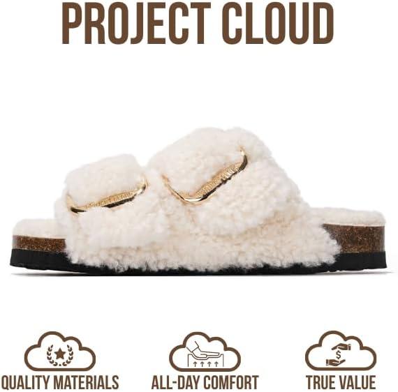 imageProject Cloud 100 Genuine Leather Kids Sandals  Non Slip and Lightweight Beach Sandals for Girls with Memory Foam Insole amp Cork Footbed Slides for Kids  Boys amp Girls Footwear Little SantoriniOff White Fur