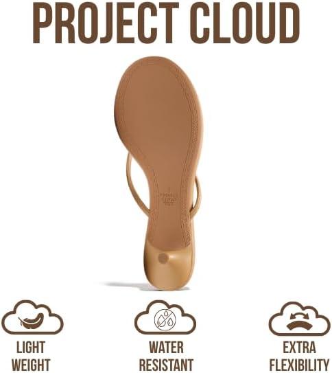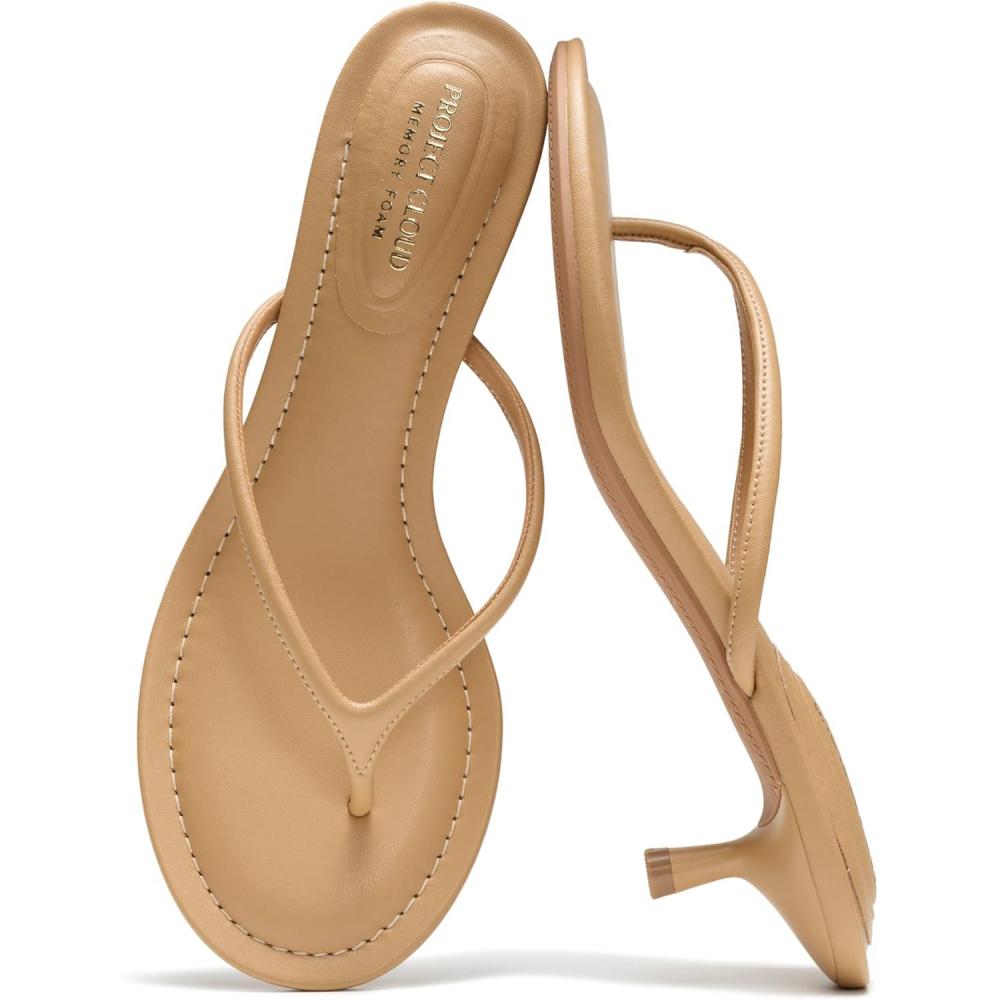 Project Cloud 100% Genuine Leather Kitten Heels for Women Footwear - Memory Foam Fashion Thong Heels for Women - Lightweight Summer Sandals for Womens 2026 (Mango)(Tan Leather)