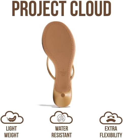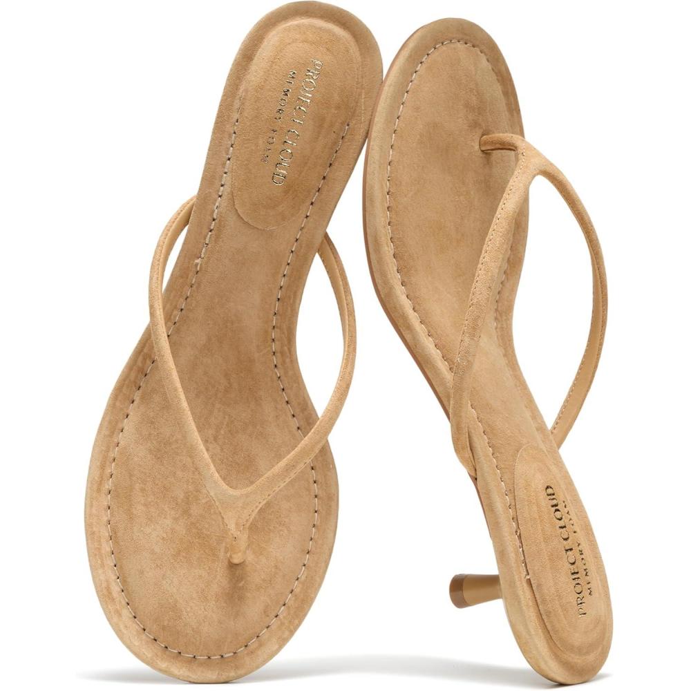 Project Cloud 100% Genuine Leather Kitten Heels for Women Footwear - Memory Foam Fashion Thong Heels for Women - Lightweight Summer Sandals for Womens 2026 (Mango)(Tan Suede)