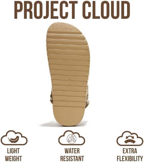 Project Cloud 100% Genuine Leather Platform Sandals Women Footwear – Comfortable Strappy Summer Sandals for Women 2026 – Memory Foam and Non-Slip Beach Slides(Beige)