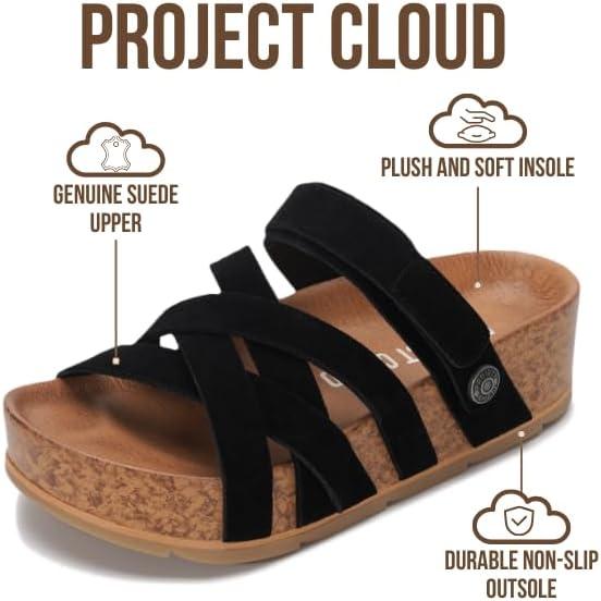 imageProject Cloud 100 Genuine Leather Platform Sandals Women  Strappy Wedges with Comfortable Plush Insole  Lightweight amp Non Slip Wedge Sandals for Women 2026Black Suede
