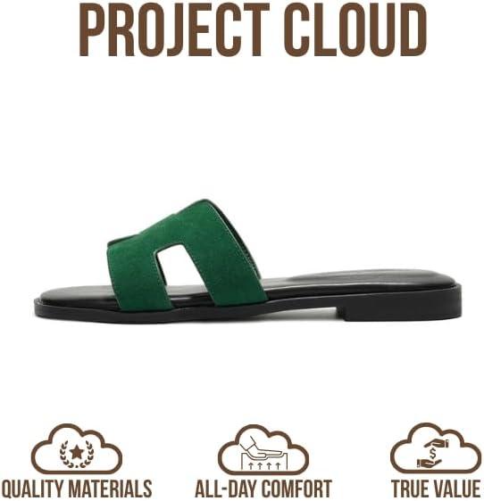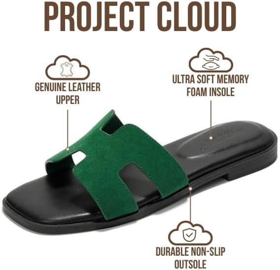 Project Cloud 100% Genuine Leather Sandals for Women 2026 - Fashion Flat Womens Sandals with Memory Foam Insole Slides Sandals Women Footwear - Mules Women's Sandals (Jannel)(Green Suede)