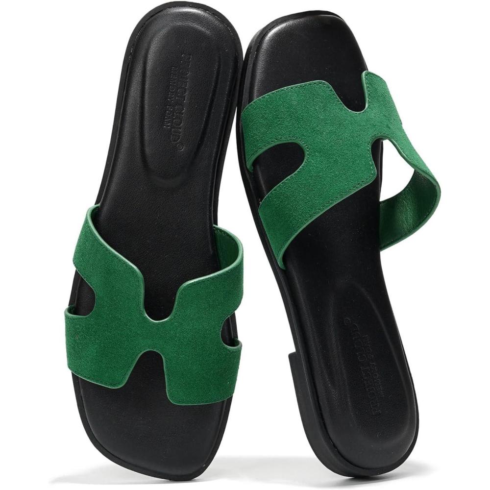 Project Cloud 100% Genuine Leather Sandals for Women 2026 – Fashion Flat Womens Sandals with Memory Foam Insole Slides Sandals Women Footwear – Mules Women’s Sandals (Jannel)(Green Suede)