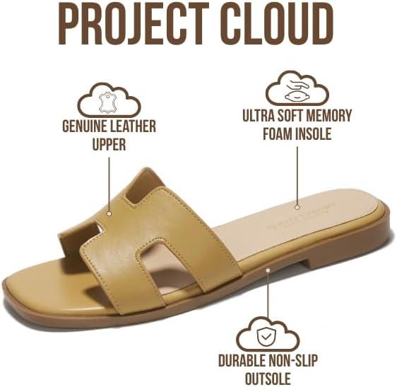 imageProject Cloud 100 Genuine Leather Sandals for Women 2026  Fashion Flat Womens Sandals with Memory Foam Insole Slides Sandals Women Footwear  Mules Womens Sandals JannelNude
