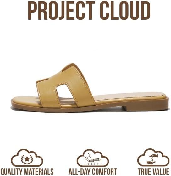 Project Cloud 100% Genuine Leather Sandals for Women 2026 – Fashion Flat Womens Sandals with Memory Foam Insole Slides Sandals Women Footwear – Mules Women’s Sandals (Jannel)(Nude)