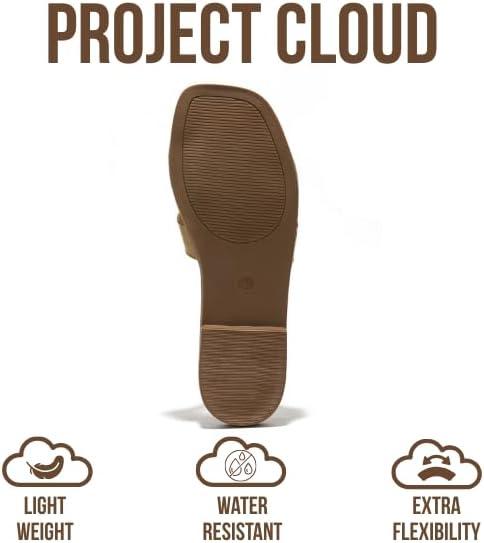 Project Cloud 100% Genuine Leather Sandals for Women 2026 - Fashion Flat Womens Sandals with Memory Foam Insole Slides Sandals Women Footwear - Mules Women's Sandals (Jannel)(Nude)
