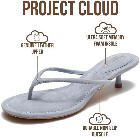 Project Cloud 100% Genuine Leather Sandals Women Footwear - Memory Foam Insole Fashion Dress Kitten Heels for Women - Lightweight and Comfortable Summer Sandals for Women 2026 (Mango)(Blue)