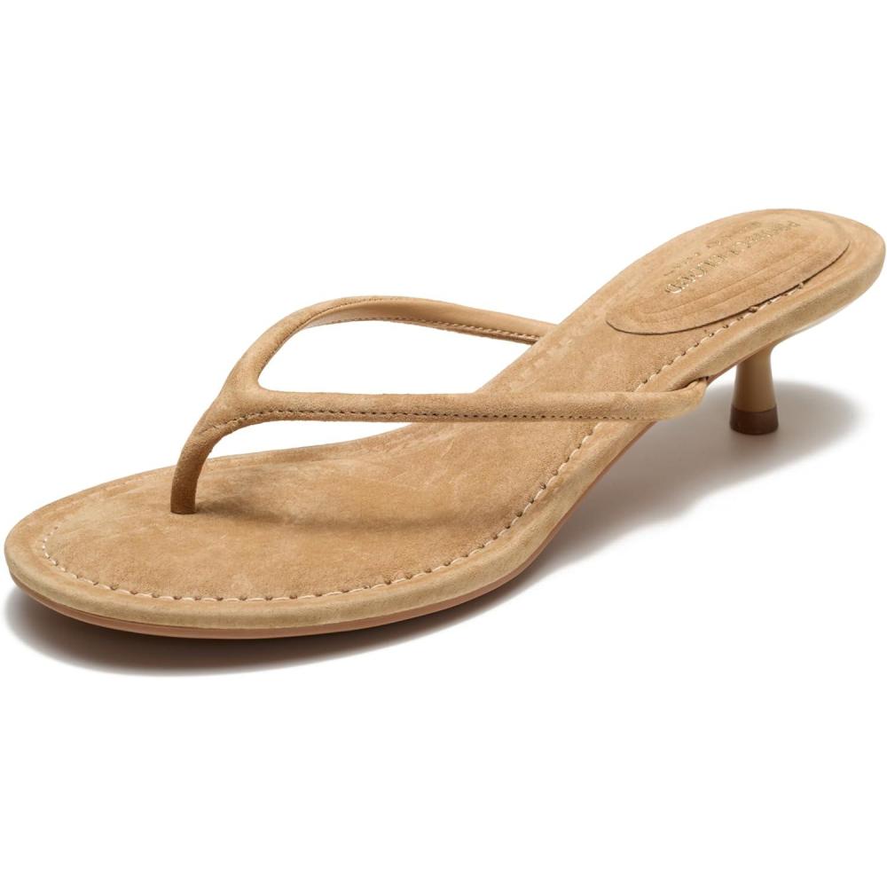 Project Cloud 100% Genuine Leather Sandals Women Footwear - Memory Foam Insole Fashion Dress Kitten Heels for Women - Lightweight and Comfortable Summer Sandals for Women 2026 (Mango)(Tan Suede)