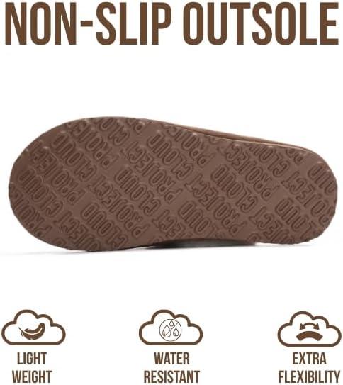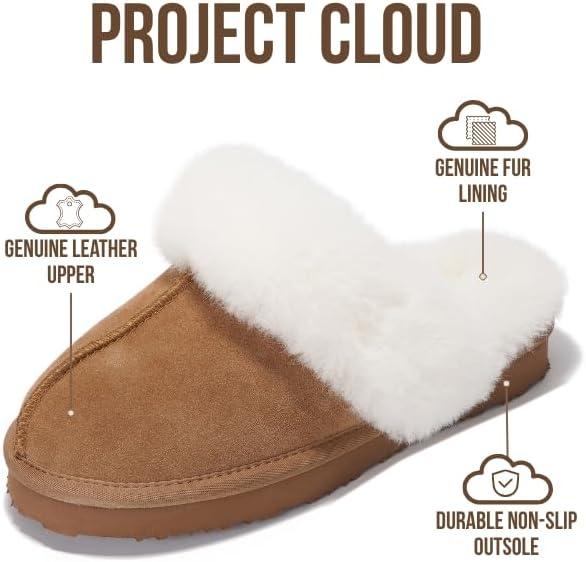 Project Cloud 100% Genuine Leather Slippers for Women Footwear with Genuine Fur Lining Womens Clogs & Mule – Non-Slip Indoor/Outdoor Scuff Womens Slippers with Memory Foam Insole(Frost Suede)
