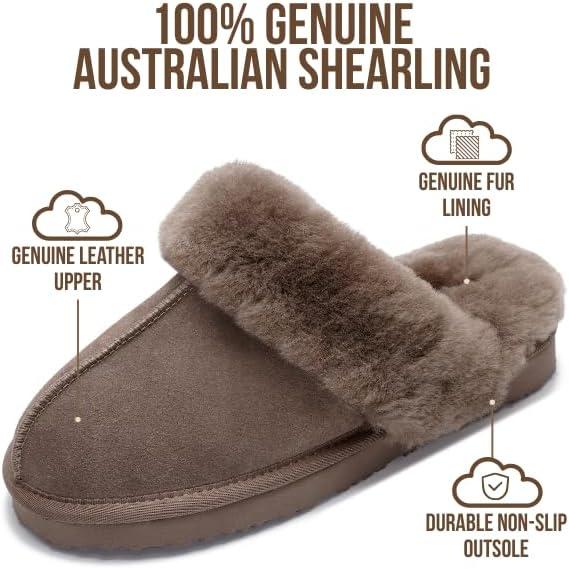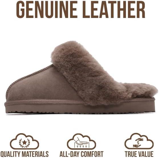 Project Cloud 100% Genuine Leather Slippers for Women Footwear with Genuine Fur Lining Womens Clogs & Mule - Non-Slip Indoor/Outdoor Scuff Womens Slippers with Memory Foam Insole(Taupe)
