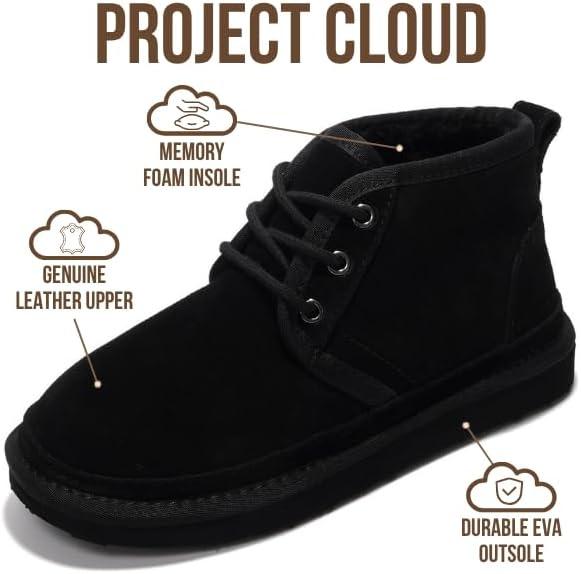 Project Cloud Ankle Boots for Women - Genuine Suede Shoes with Memory Foam Insole - Non-Slip Mini Winter Boots Shoes for Women 2025 (Julee)(Black)