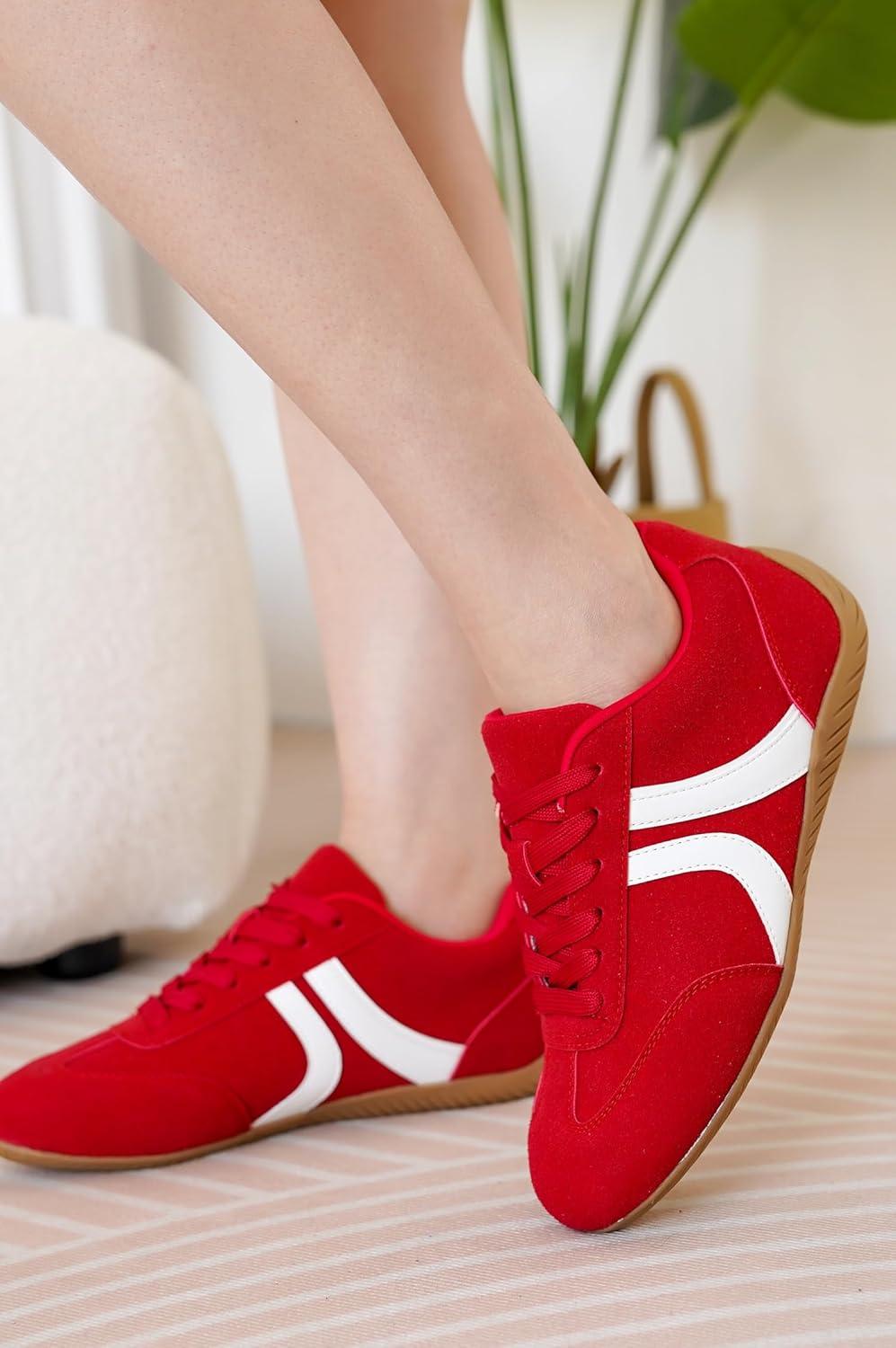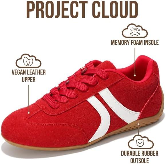 Project Cloud Barefoot Shoes Women – Memory Foam Lace-Up Womens Sneakers – Lightweight & Non Slip Womens Shoes Casual – All-Day Women’s Fashion Sneakers for 2025 (Goal)(Red)