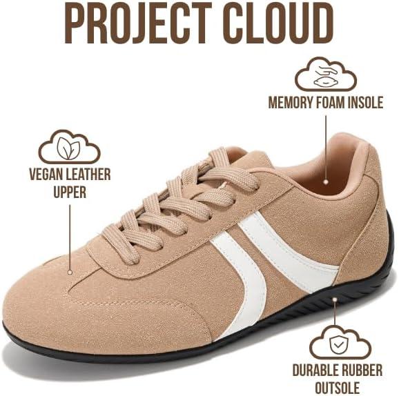 Project Cloud Barefoot Shoes Women – Memory Foam Lace-Up Womens Sneakers – Lightweight & Non Slip Womens Shoes Casual – All-Day Women’s Fashion Sneakers for 2025 (Goal)(Tan)