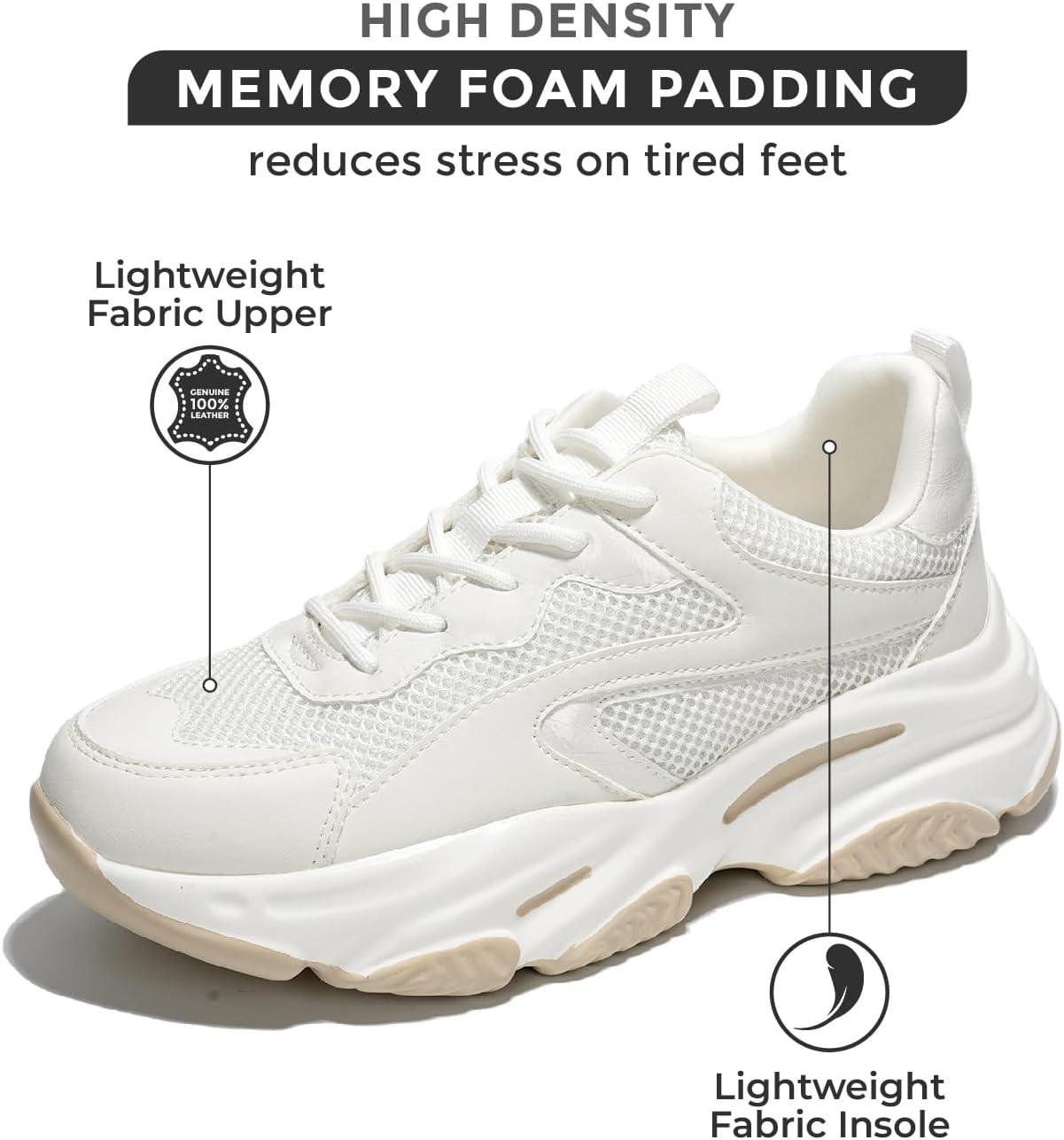 Project Cloud Chunky Platform Sneakers for Women – Comfortable Memory Foam Insole Shoes for Women Footwear – Lace-up Womens Shoes & Fashion Sneakers (Coco)(Offwhite)
