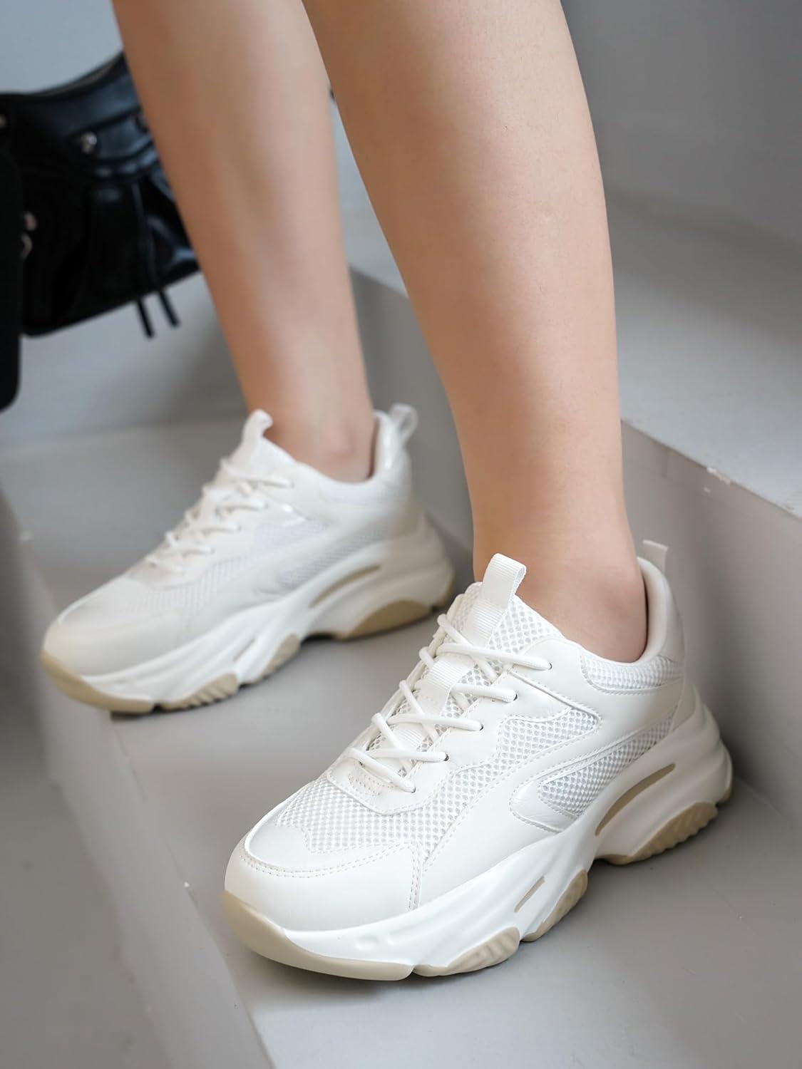 Project Cloud Chunky Platform Sneakers for Women - Comfortable Memory Foam Insole Shoes for Women Footwear - Lace-up Womens Shoes & Fashion Sneakers (Coco)(Offwhite)