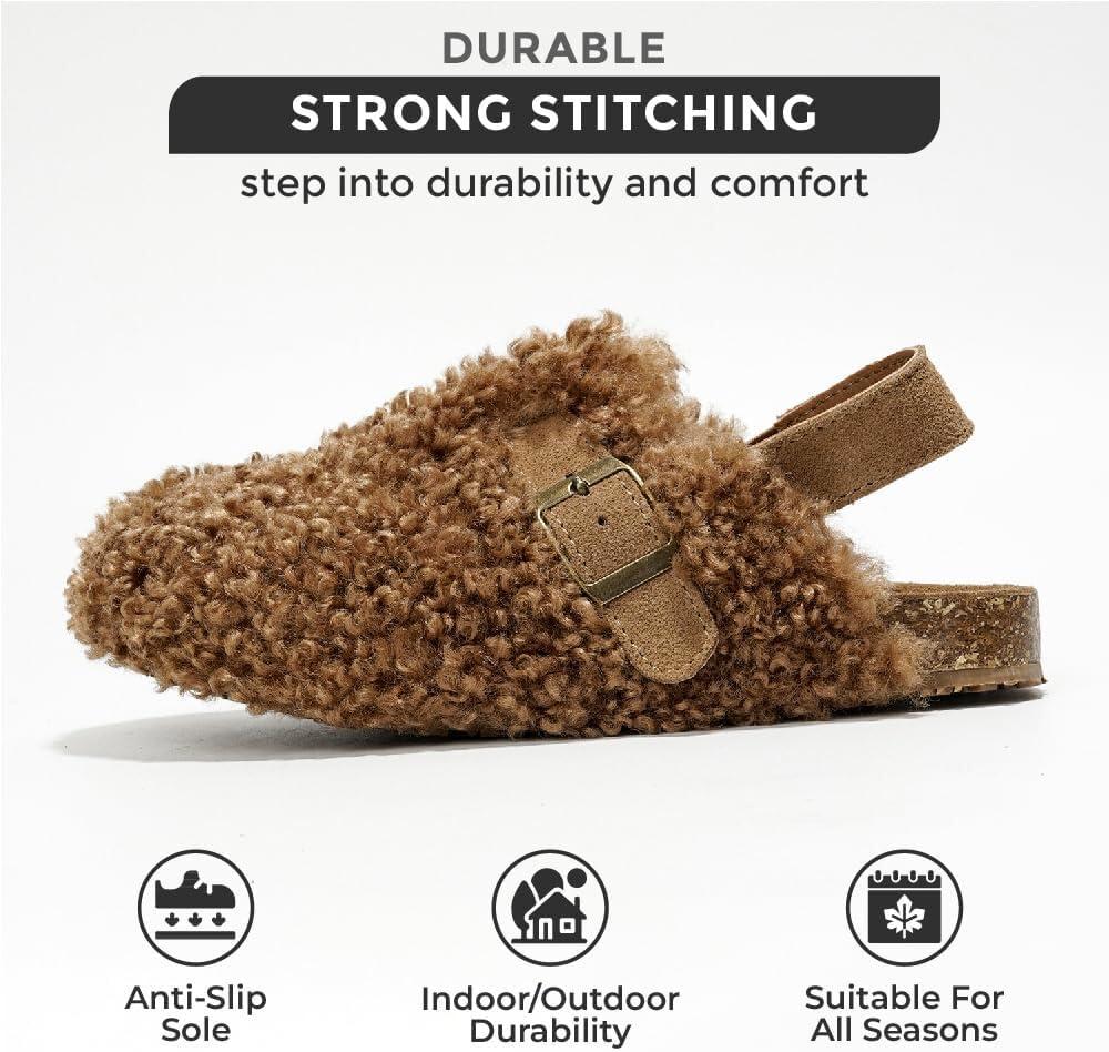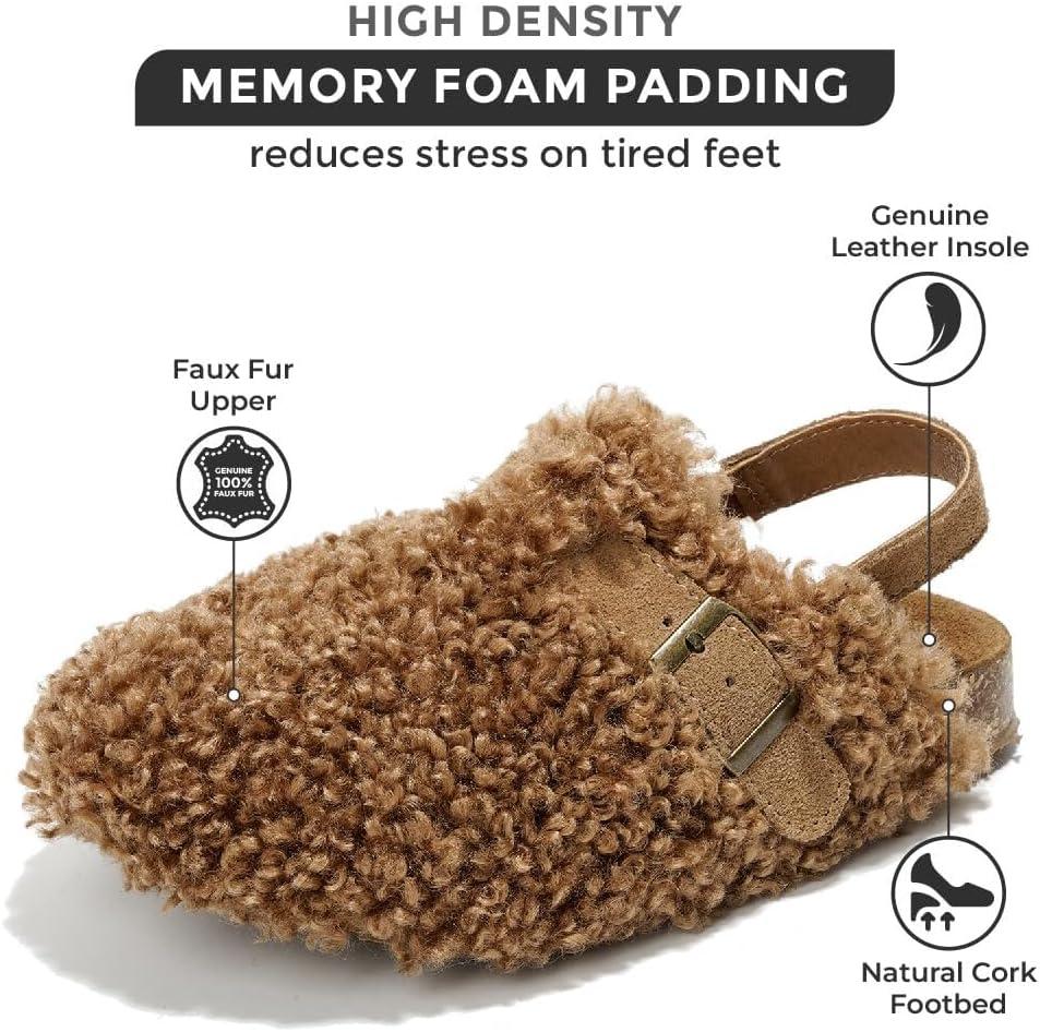 Project Cloud Clogs for Kids - Genuine Leather Kids Clogs with Cork Footbed Arch Support - Non-Slip Slippers & Sandals for Boys & Girls Footwear(Chestnut Fur Lined)