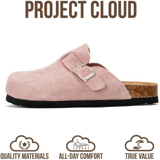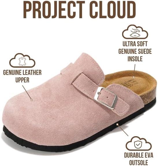 Project Cloud Clogs for Kids – Genuine Leather Kids Clogs with Cork Footbed Arch Support – Non-Slip Slippers & Sandals for Boys & Girls Footwear(Stone Suede)