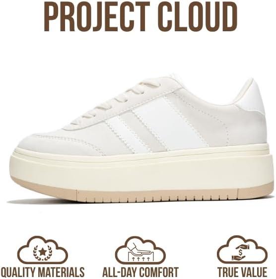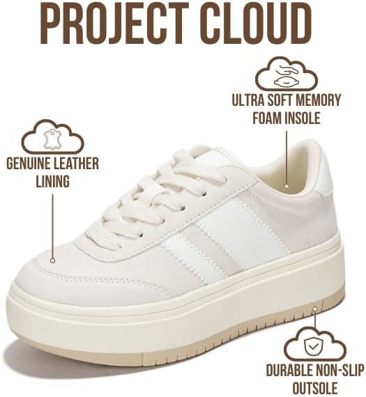 Project Cloud Fashion Platform Sneakers for Kids 2026 – Lightweight Memory Foam Insole Kids Shoes – Durable & Non-Slip Lace up Trendy Platform Kids Sneakers (Little Nita)(Offwhite)