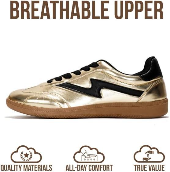 Project Cloud Fashion Sneakers for Women 2026 – Lace-Up Shoes Trendy Women Sneakers with Memory Foam Insole Women’s Fashion Sneakers Non-Slip Womens Shoes (Irita)(Black Gold)