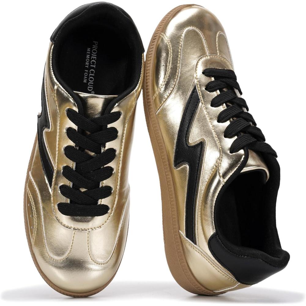 imageProject Cloud Fashion Sneakers for Women 2026  LaceUp Shoes Trendy Women Sneakers with Memory Foam Insole Womens Fashion Sneakers NonSlip Womens Shoes IritaBlack Gold