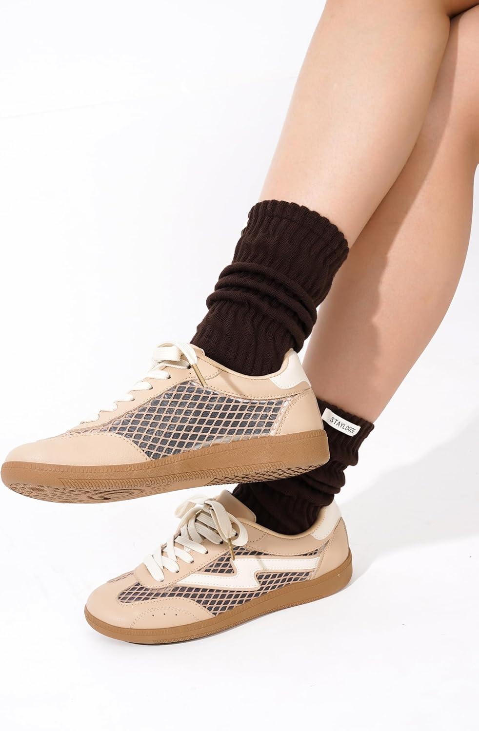 Project Cloud Fashion Sneakers for Women 2026 – Lace-Up Shoes Trendy Women Sneakers with Memory Foam Insole Women’s Fashion Sneakers Non-Slip Womens Shoes (Irita)(Nude Mesh)