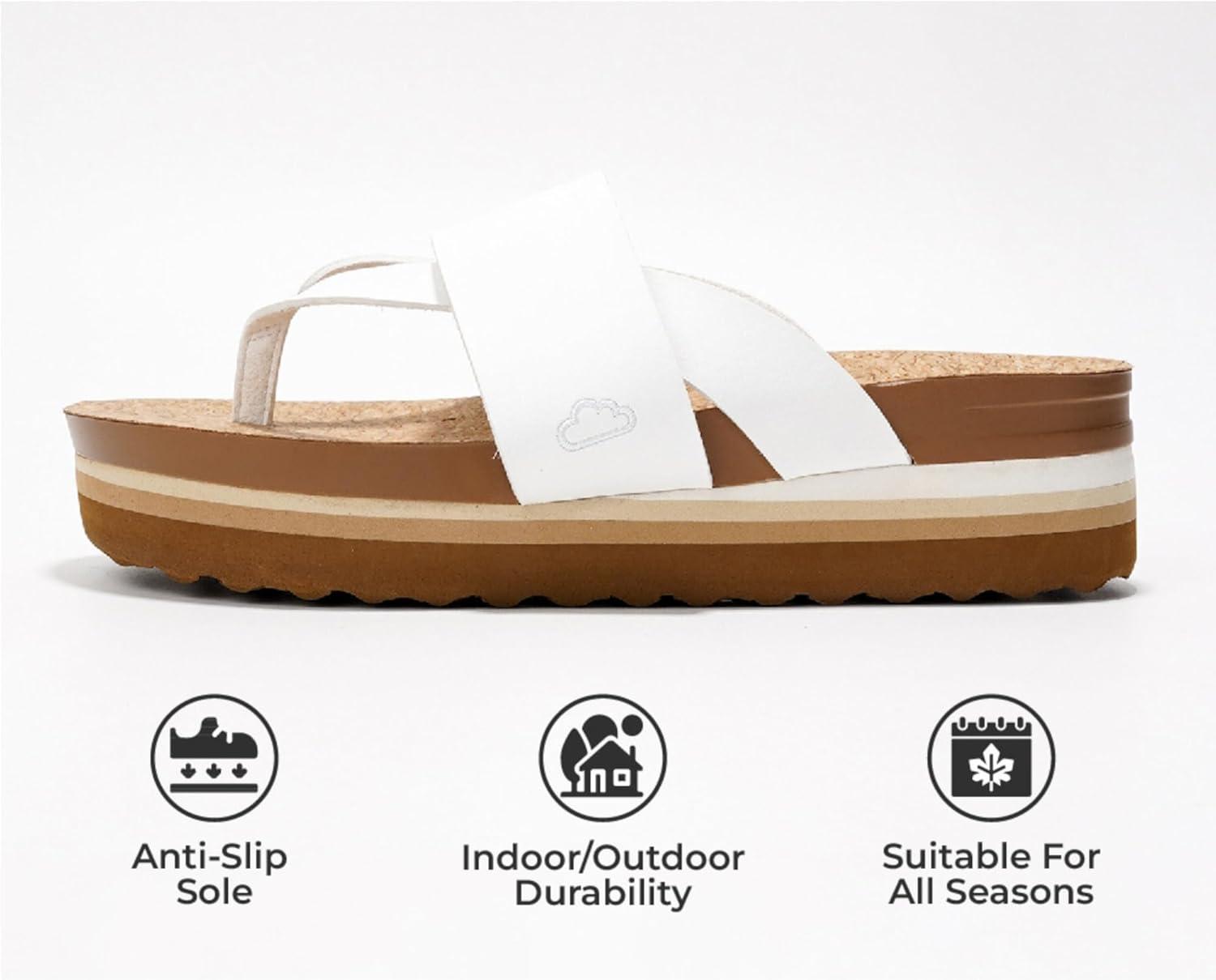Project Cloud Fashion Womens Sandals – Memory Foam Insole and Comfortable Platform Sandals for Women 2025 – Lightweight and Non-slip Perfect Beach Slides(Offwhite Thong)
