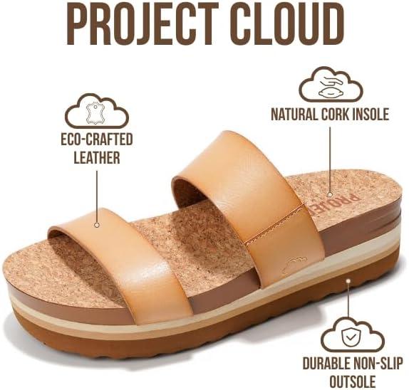 Project Cloud Fashion Womens Sandals – Memory Foam Insole and Comfortable Platform Sandals for Women – Lightweight and Non-slip Perfect Beach Slides(Natural Slide)