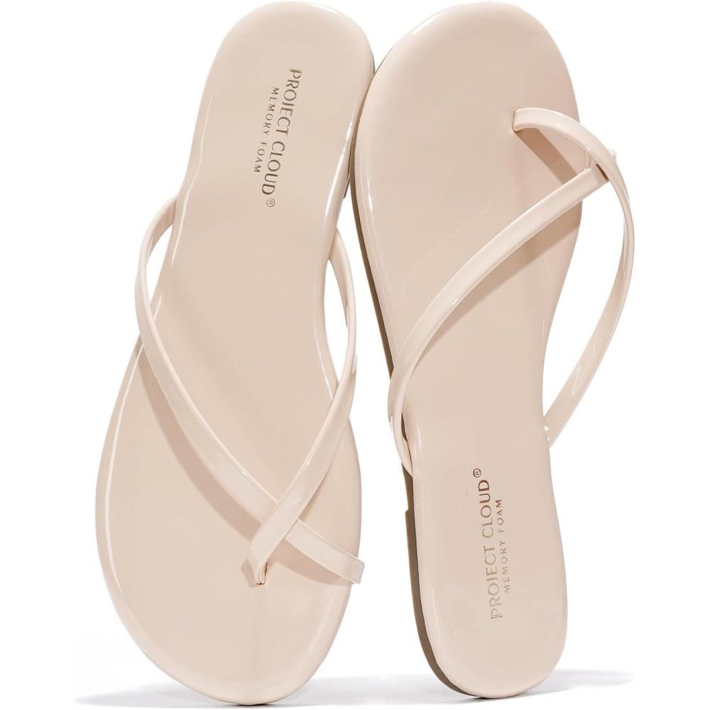 Save up to 40% on Project Cloud Flip Flops for Women – Memory Foam Flats Summer Sandals for Women 2025 – Vegan Leather Lightweight Womens Sandals Summer Beach Essentials Slides(Beige: Cross-strap) styles during our end-of-season sale.