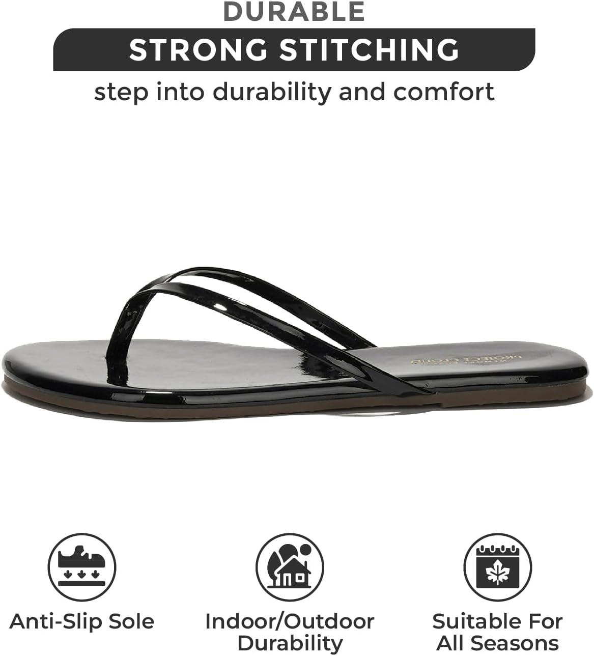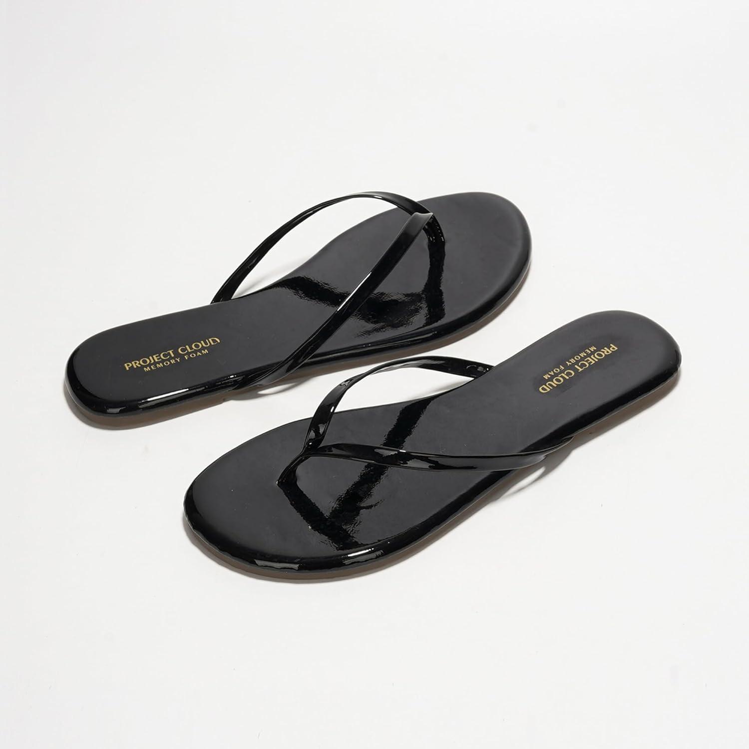 Project Cloud Flip Flops for Women - Memory Foam Flats Summer Sandals for Women 2025 - Vegan Leather Lightweight Womens Sandals Summer Beach Essentials Slides(Black Patent)