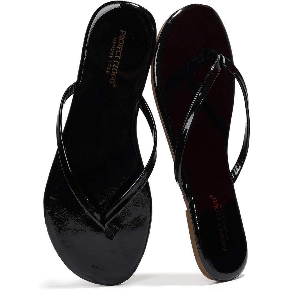 imageProject Cloud Flip Flops for Women  Memory Foam Flats Summer Sandals for Women 2025  Vegan Leather Lightweight Womens Sandals Summer Beach Essentials SlidesBlack Patent
