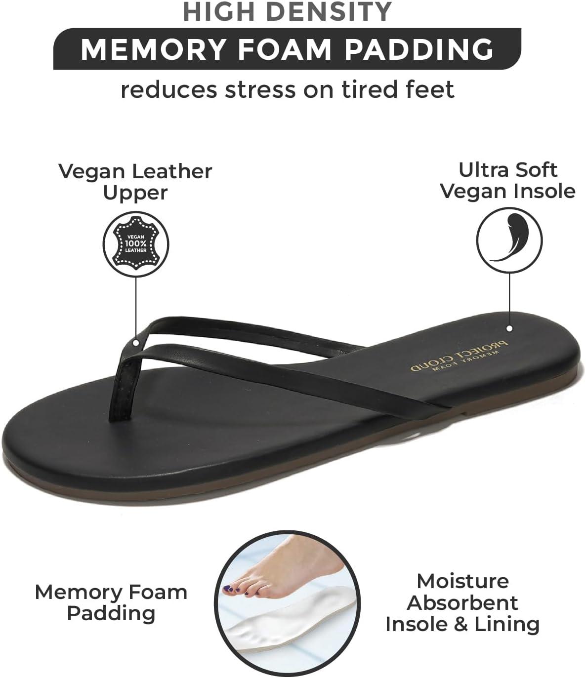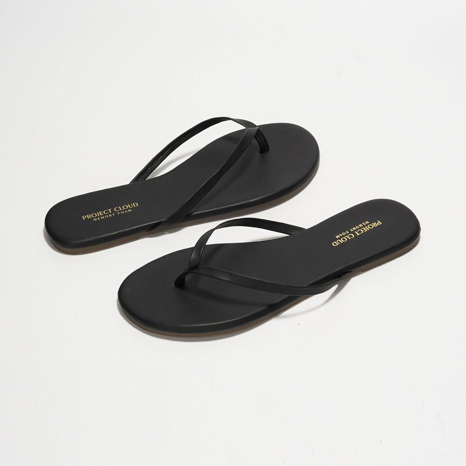 Project Cloud Flip Flops for Women – Memory Foam Flats Summer Sandals for Women 2025 – Vegan Leather Lightweight Womens Sandals Summer Beach Essentials Slides(Black)