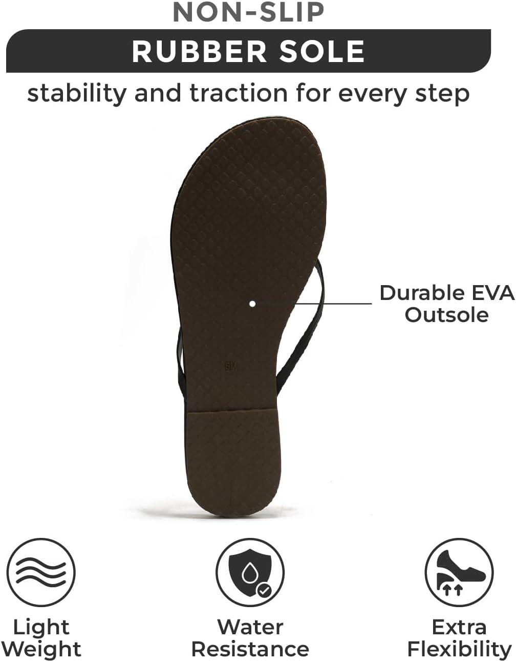 Project Cloud Flip Flops for Women - Memory Foam Flats Summer Sandals for Women 2025 - Vegan Leather Lightweight Womens Sandals Summer Beach Essentials Slides(Black)