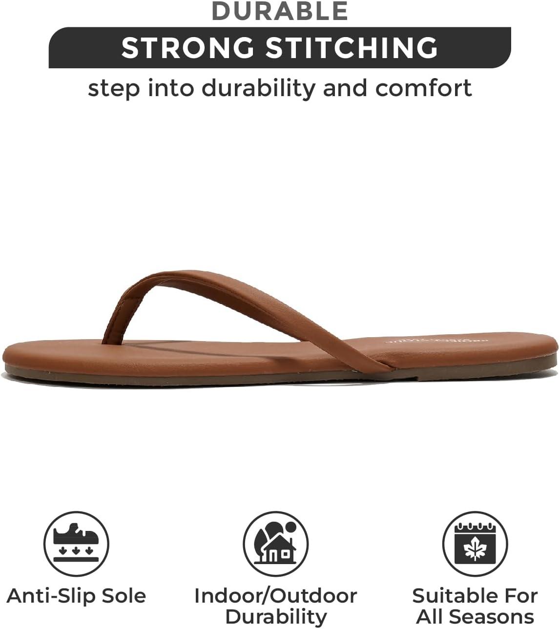 Project Cloud Flip Flops for Women – Memory Foam Flats Summer Sandals for Women 2025 – Vegan Leather Lightweight Womens Sandals Summer Beach Essentials Slides(Cognac)