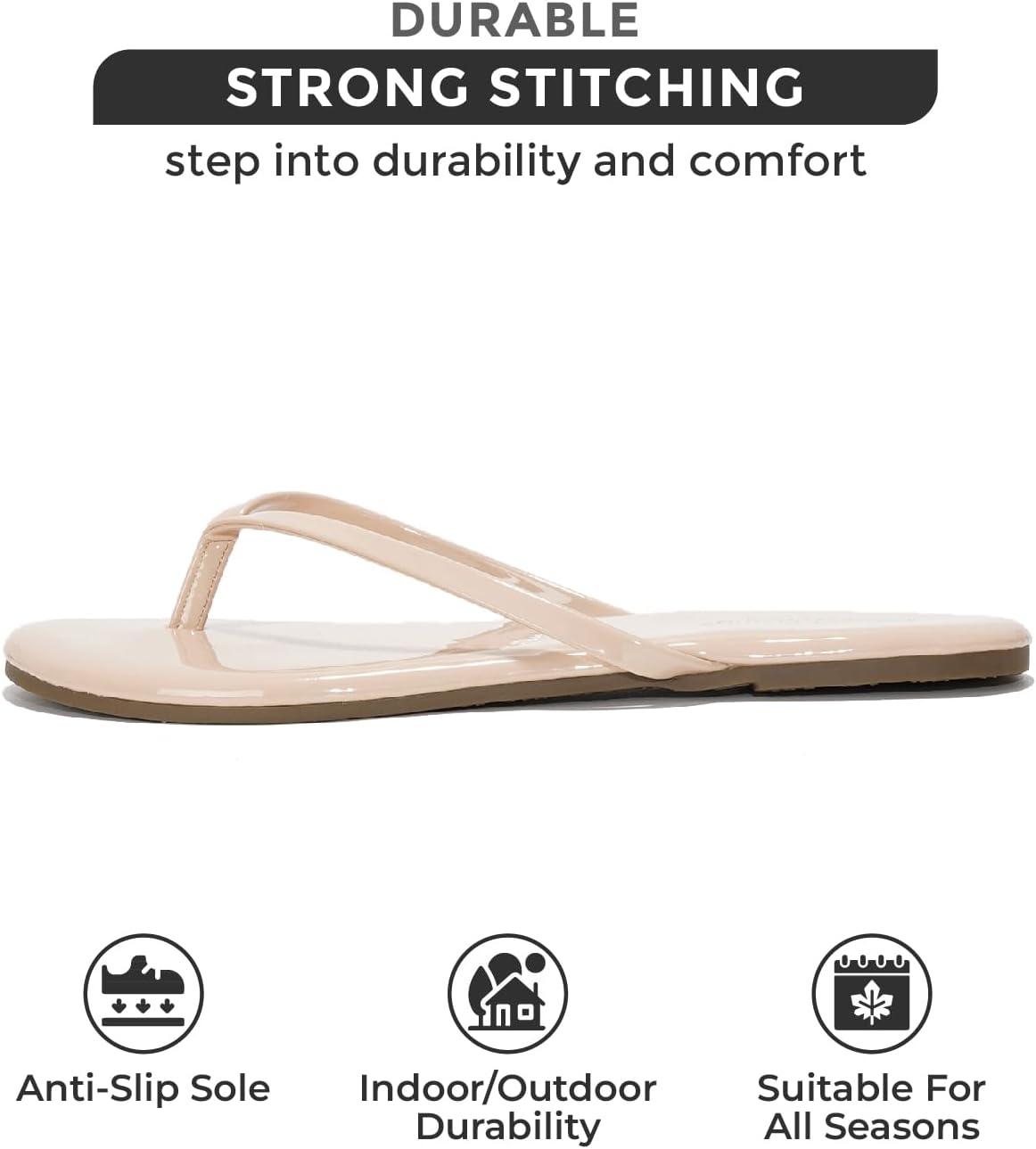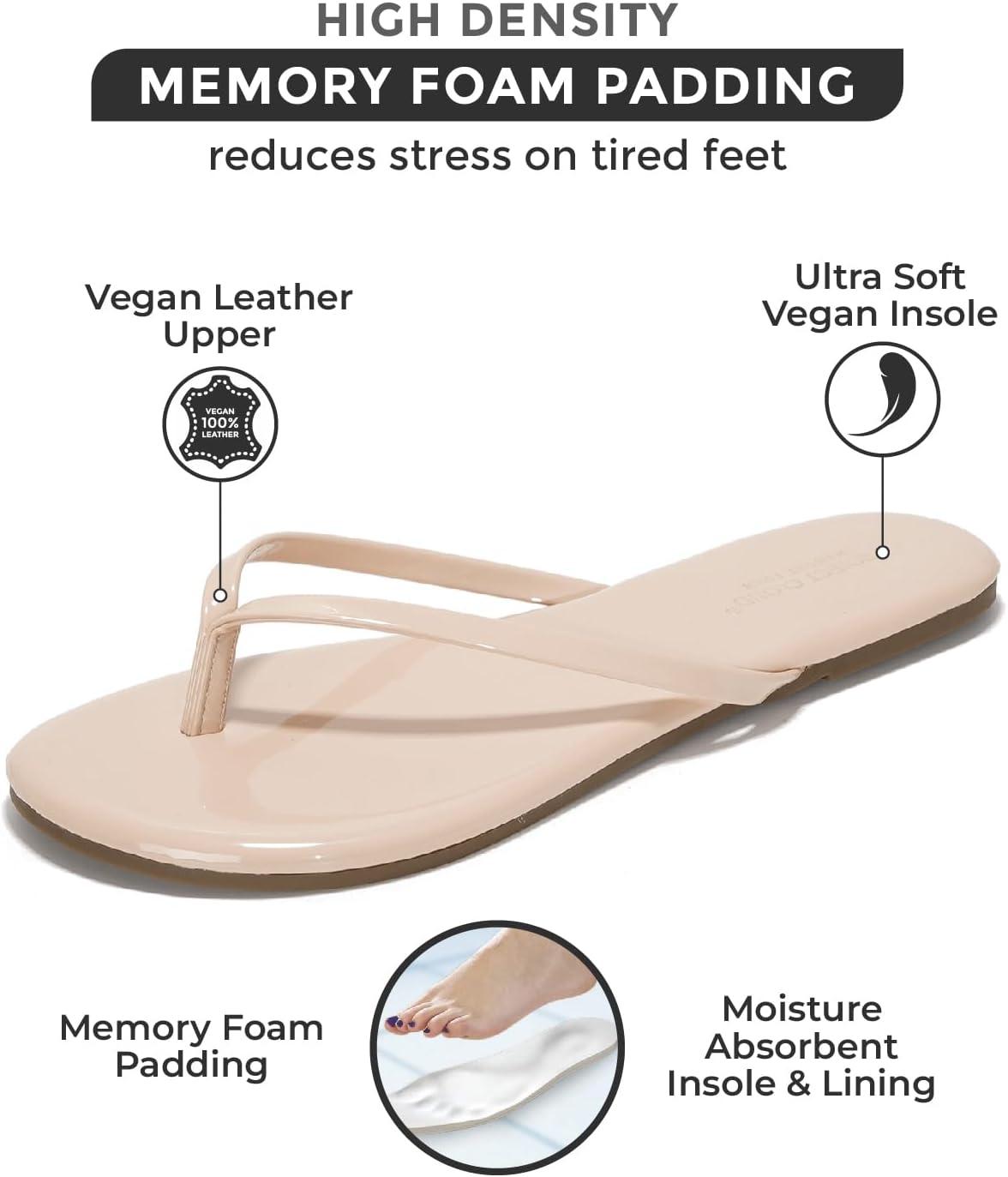 Project Cloud Flip Flops for Women – Memory Foam Flats Summer Sandals for Women 2025 – Vegan Leather Lightweight Womens Sandals Summer Beach Essentials Slides(Nude Patent)