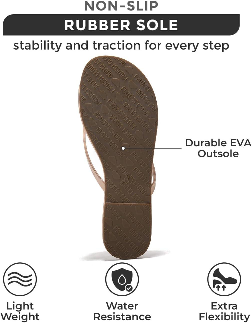 Project Cloud Flip Flops for Women – Memory Foam Flats Summer Sandals for Women 2025 – Vegan Leather Lightweight Womens Sandals Summer Beach Essentials Slides(Tan)