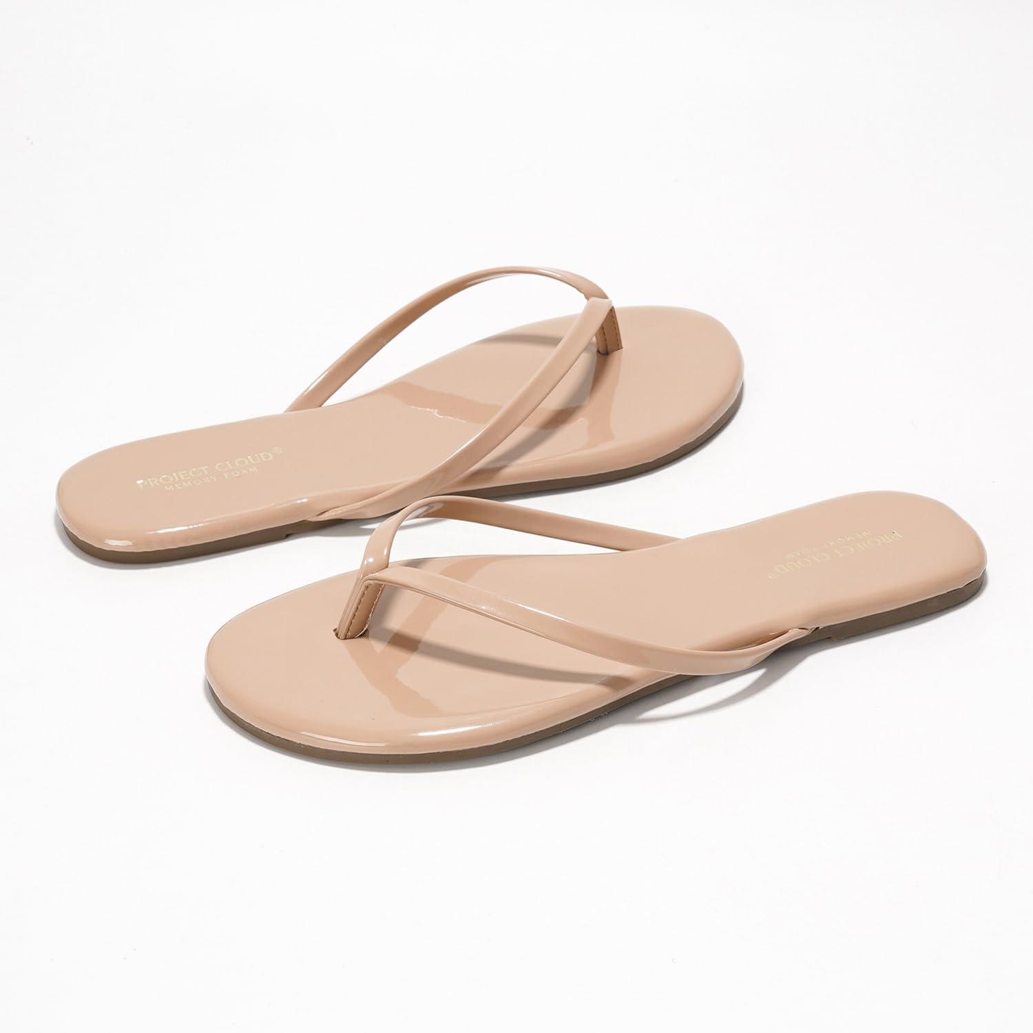 Project Cloud Flip Flops for Women - Memory Foam Flats Summer Sandals for Women 2025 - Vegan Leather Lightweight Womens Sandals Summer Beach Essentials Slides(Taupe Patent)