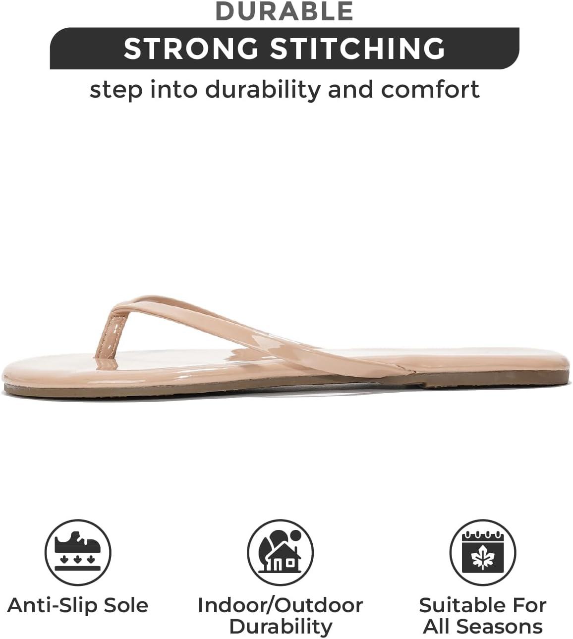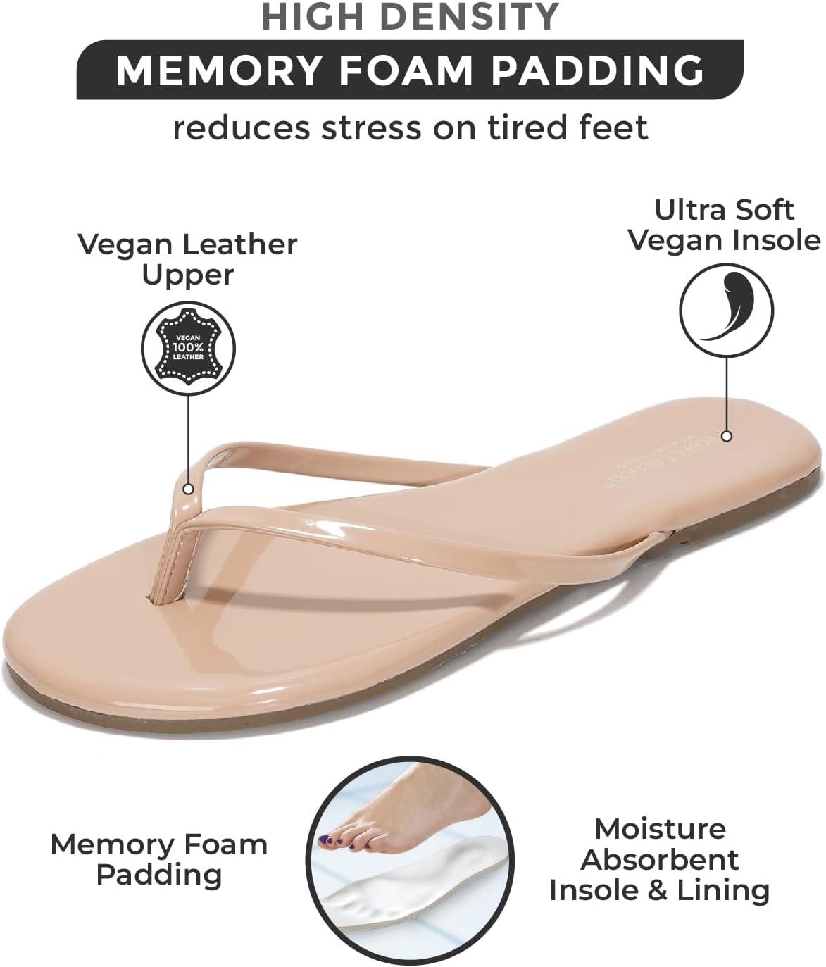 Project Cloud Flip Flops for Women – Memory Foam Flats Summer Sandals for Women 2025 – Vegan Leather Lightweight Womens Sandals Summer Beach Essentials Slides(Taupe Patent)